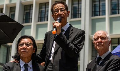 Menschenrechtsanwalt Daniel Wong, ehemaliger Abgeordneter Martin Lee, Rechtsanwalt John Clancey am 7.8.2019 |