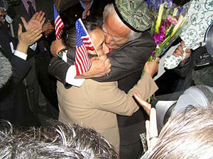Rebiya Kadeer wird nach ihrer Ankunft in der USA stürmisch von ihrem Mann begrüßt