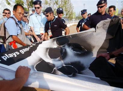 Polizei stoppt friedlichen Protest von Tibetaktivisten vor Schlussveranstaltung der Olympiade