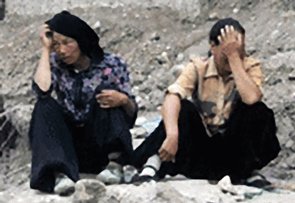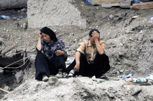 Tibeterinnen weinen nach Erdrutsch in Drugchu 2010 (Bild: RFA)